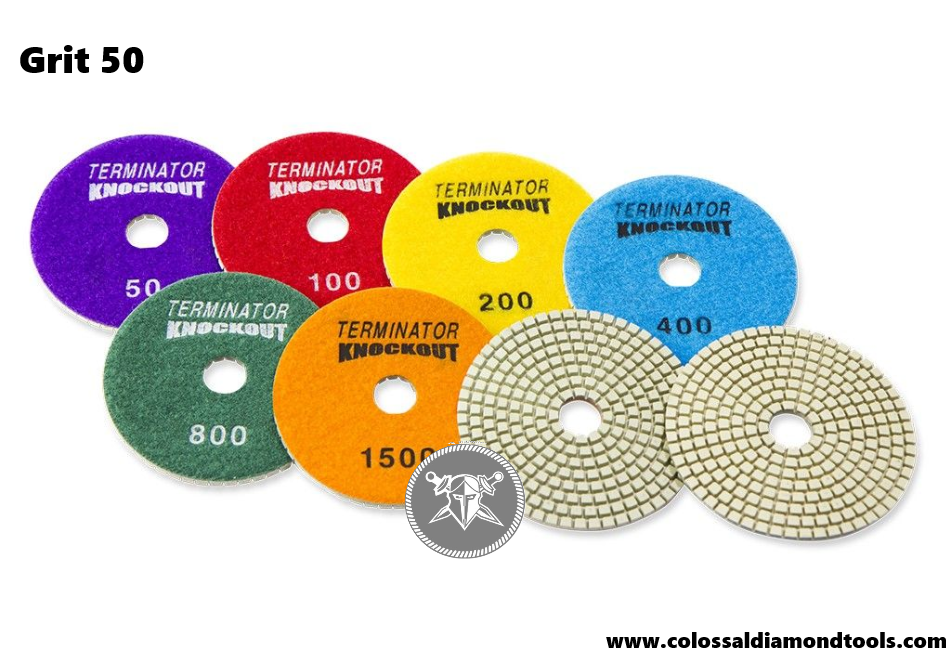 Terminator 4" Knockout Polishing Pad White Resin 50 Grit